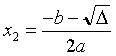 Pour l'équation du second degré, ax2 + bx + c = 0, les solutions dépendent de la quantité Δ = b2 − 4ac, appelée discriminant ;