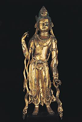 Bodhisattva du courant mahayana qui, avec compassion, baisse les yeux sur le monde humain depuis le ciel Tusita, vers lequel on regarde pour implorer son aide.