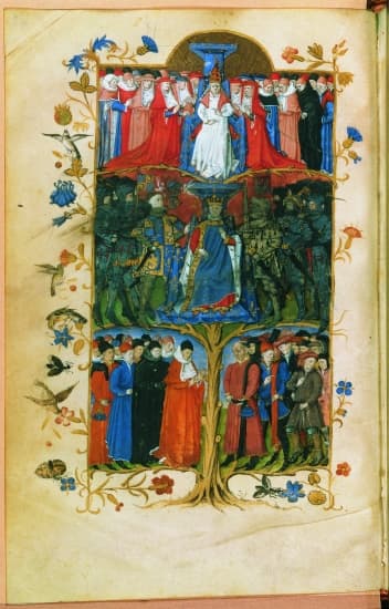 Pour sa part déchirée par le grand schisme d’Occident (1378-1417), la papauté n'offre plus de modèle, ni moral ni religieux. La chrétienté tout entière est divisée entre le pape de Rome, celui d'Avignon, et un troisième issu du concile de Pise en 1409. L'unité ne doit être retrouvée qu'avec l'élection de Martin V en 1417.