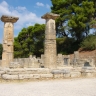 À l'extérieur de l'Altis se trouvaient les édifices civils : le bouleutérion (siège du sénat olympique, vie-iie s. avant J.-C.), le prytanée (réfectoire des hôtes officiels, ve s. avant J.-C.), et les installations nécessaires à la célébration des jeux : gymnase, Léonidaion (hôtel pour hôtes de marque), le stade, etc. Parmi les temples, le plus vaste et le plus fastueux était le temple dorique de Zeus Olympien (468-465 avant J.-C.), tandis que l'Héraïon était le plus ancien, l'un des tout premiers temples grecs construits en pierre (fin viie -début vie s.). La cella de l'Olympieion contenait la célèbre statue de Zeus, sculptée par Phidias (vers 430 avant J.-C.), la statue de culte la plus renommée de l'Antiquité. Emportée à Constantinople, elle fut détruite dans un incendie en 475 après J.-C.