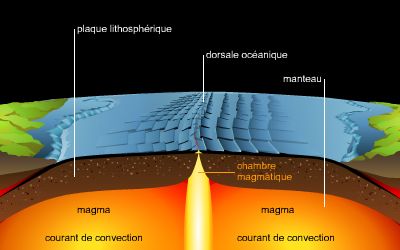 Les théories de l'expansion des fonds océaniques et de la tectonique des plaques ont reçu un apport expérimental concret par la mise en évidence (depuis les années 1960) du rôle fondamental joué par les dorsales océaniques. Celles-ci sont le résultat d'un épanchement continu d'un magma sous-jacent, de caractère basaltique, qui, en se déversant de part et d'autre, reforme sans cesse de nouveaux fonds marins et repousse les fonds anciens.