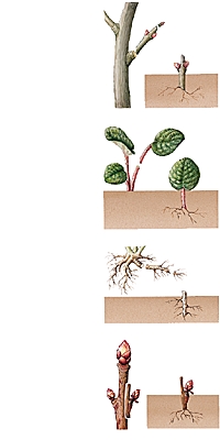 L'espèce à propager détermine le choix de la méthode de bouturage de tige : bouturage en sec pour les espèces à feuillage caduc (saule, peuplier), bouturage de rameaux feuillés ligneux pour les espèces à feuillage persistant (laurier noble, Magnolia grandiflora), bouturage de pousses herbacées.