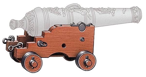 – l'affût repose sur le sol par des roues et une ou plusieurs flèches ou par l'intermédiaire d'un châssis chenillé (il est remplacé dans les blindés par le corps de tourelle) ;