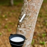 Une plantation d'un hectare d'hévéas sélectionnés peut produire actuellement 2 000 kg par an, soit 5 à 7 kg par arbre suivant l'âge et la densité. L'exploitation d'un arbre commence 5 à 7 ans après sa plantation et dure 25 à 30 ans.