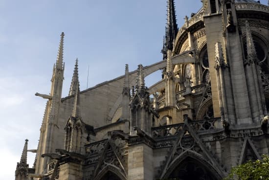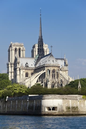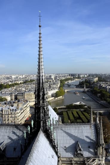 Au-dessus du chœur s’élève la flèche construite au xixe siècle. L’abside, que l’on voit bien surtout de la rive gauche, est un chef-d’œuvre d’élégance et de proportions, grâce à la légèreté des arcs-boutants qu’elle supporte : la vision du chevet de Notre-Dame évoque un navire avec ses cordages, ses mats et ses voiles, ce qui explique la comparaison souvent faite avec un « vaisseau de pierre ».