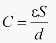 , où S est la surface en regard des armatures, d la distance entre les deux armatures et ∊ la permittivité du milieu situé entre les armatures (c'est-à-dire la réponse du milieu à un champ électrique).