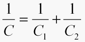 Les condensateurs peuvent être groupés en série, ils forment alors une batterie de condensateurs (→ circuit électrique). Pour deux condensateurs de capacités C1 et C2 montés en série, la capacité C de la batterie est donnée par la formule :