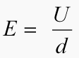 avec E en volts par mètre (V•m–1), U en volts (V) et d en mètres (m).
