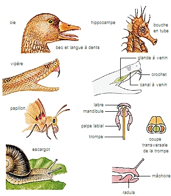 Chez presque tous les animaux, le processus de digestion a lieu à l’intérieur du corps, après ingestion des aliments. On le rencontre aussi, au niveau cellulaire, chez les protistes : ceux-ci englobent les particules dont ils se nourrissent (des bactéries par exemple), les incluent dans des vacuoles où des enzymes les découpent en molécules élémentaires. Chez les champignons, dans des groupes restreints de végétaux (plantes insectivores, plus connues sous le nom de « plantes carnivores »), chez quelques insectes carnassiers (punaises d'eau [gerris, nèpes, notonectes...], araignées, qui injectent à leurs proies des sucs digestifs qui vont dissoudre leurs tissus) et étoiles de mer qui dévaginent leur sac digestif et l'appliquent sur la proie), la digestion est au contraire externe, et précède l'absorption des nutriments.