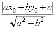 , la distance d'un point M0 (x0, y0) à une droite D d'équation cartésienne ax + by + c = 0 est donnée par