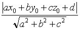 , la distance d'un point M0 (x0, y0, z0) à un plan P d'équation cartésienne