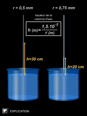 La très forte tension superficielle de l'eau (72 dyn . cm−1) explique ses mouvements de bas en haut, par capillarité, dans le sol et dans les plantes : l'adhérence des molécules d'eau entre elles autorise ce défi aux lois de la pesanteur.