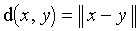 Sur l'ensemble ℝ des réels en tant qu'espace vectoriel, l'application qui, à tout réel, associe sa valeur absolue est une norme. Sur l'ensemble ℂ des complexes, l'application qui, à tout complexe, associe son module est une norme. Tout espace muni d'une norme peut être muni d'une distance, plus particulièrement la distance définie par