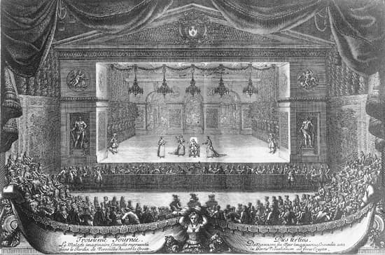 Richelieu fait construire une scène dans le palais Cardinal. L'Académie se passionne aussitôt et étale sa « fureur de raison », voulant régler, codifier et arbitrer l'art dramatique, d'après de simples remarques d'Horace et d'Aristote qu'elle érige en véritables dogmes. C'est alors que naît la règle des trois unités. On a tort de dire que ces règles ont été imposées par l'Académie car elles sont aussi nées du besoin de simplifier la technique et de rendre possible la représentation malgré le manque d'espace scénique. L’unité de temps (24 heures) évite de faire des scènes nocturnes qui posent des problèmes d'éclairage ; l’unité de lieu supprime les changements de décor, évitant ainsi les interruptions et les bévues techniques ; l’unité d'action, enfin, où toute péripétie est reléguée dans la coulisse, donne une importance sans égale au discours. Néanmoins, le goût du baroque garde sa vigueur avec Jean de Rotrou et Thomas Corneille, le ballet à l'italienne et l'opéra ayant pour scénariste Philippe Quinault.