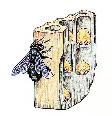 Les symphytes vivent aux dépens des végétaux. Chez les tenthrèdes, ou mouches à scie, la femelle porte une tarière en forme de scie, grâce à laquelle elle dépose ses œufs dans les végétaux. Les sirex, jaune et noir, atteignent 40 mm de long. Leurs larves vivent dans le bois, s'attaquant surtout aux résineux.