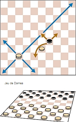 Les jeux de dames, ou jeux de damier, auraient également été introduits par les Arabes dans l'Europe du Moyen Âge. Plus accessibles que les échecs, ils utilisent le même type de plateau et de simples pions. Les variantes sont fort nombreuses et le jeu actuel, dit aussi « dames polonaises », serait l'invention d'un militaire français au début du xviiie s. Il existe des dames turques dont les règles sont très différentes, et plusieurs jeux africains de damier anciens, comme le dâmma et le seega.