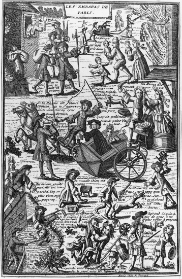 Paris, avec 400 000 habitants environ, est une ville turbulente qui compte 40 000 mendiants et autant de domestiques. L'Hôpital général est créé en 1657, et on y enferme pêle-mêle indigents, vagabonds ou malfaiteurs. Les rues de la capitale sont éclairées et, pour la première fois, on peut y circuler de nuit sans craindre de s'y faire détrousser.