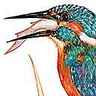Petit oiseau (alcédinidé) vivement coloré, vivant au bord des cours d'eau (dans la berge desquels il creuse son nid) et se nourrissant de proies aquatiques, capturées en plongée à l'aide de son bec long et pointu. (Nom usuel meunier.)