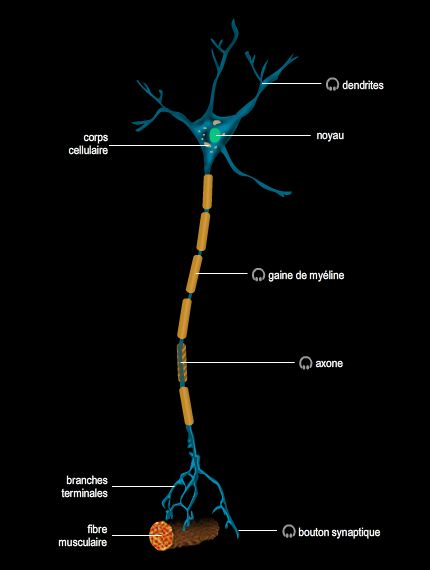Le neurone, ou cellule nerveuse, est l'unité fonctionnelle du système nerveux. Sa configuration cellulaire spécifique le rend capable de générer, de transmettre et/ou de recevoir des informations sous forme de signaux électriques (influx nerveux).
