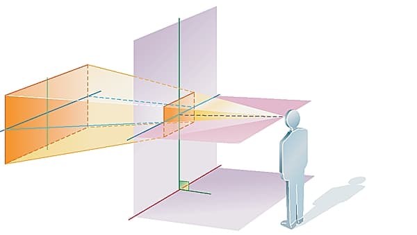 Cette solution rationnelle, qui s'accordera à l'esthétique classique et se révélera l'une des plus satisfaisantes pour l'esprit moderne, s'organise à partir de l'œil du spectateur. Celui-ci est placé en un point fixe, nommé point de vue, ou centre de projection. Il contemple des objets ou des figures situés sur une surface où l'illusion de la profondeur est donnée par la diminution de la taille des objets et la convergence de lignes qui vont en se rapprochant (elles sont parallèles dans la nature) pour se rejoindre en un point de fuite situé sur la ligne d'horizon. Avec cette formule, les êtres et les choses se situent dans un espace qui se veut comparable à l'espace réel tel qu'il se présente à un observateur.