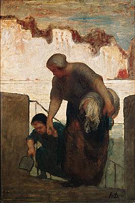 La peinture d'Honoré Daumier trouvera au contraire peu d'écho dans l'immédiat. Venu tard à cette technique, l'artiste n'expose pour la première fois qu'en 1849 et représente désormais, avec des accentuations expressionnistes, la vie des déshérités (émigrants, forains, lavandières) ou des scènes de la vie populaire (wagons de 3e classe, théâtres, tribunaux). Constantin Guys (1802-1892) donne une chronique de l'époque qui passe des élégances et des débauches parisiennes aux misères de la guerre de Crimée. Jean-François Millet assure une diffusion des thèmes réalistes de la vie rurale avec d'autant plus de succès qu'il y introduit des résonances idylliques, voire sentimentales. Il s'installe à Barbizon en 1849. Jules Breton (1827-1906), Jules Bastien-Lepage (1848-1884), Léon Lhermitte (1844-1925) s'inspireront, poésie en moins, de ses paysans, mais les vrais successeurs de Millet seront Camille Pissarro, le premier Gauguin, Seurat dans son œuvre dessinée (et l'Italien Segantini). Théodore Rousseau poursuit son œuvre teintée de romantisme, mais c'est Charles François Daubigny (1817-1878) qui exercera en Europe l'influence la plus forte. Il peint sur le site même non plus des esquisses préparatoires, mais le tableau lui-même, et son bateau-atelier, utilisé dans les années 1860, précède celui de Monet. Les paysagistes deviennent légion : Camille Flers (1802-1868), Narcisse Diaz de la Peña (1807-1876), Jules Dupré (1811-1889), Constant Troyon (1810-1865), Henri Harpignies (1819-1916), Paul Guigou (1834-1871) … Deux d'entre eux sont des précurseurs directs de l'impressionnisme : le Néerlandais Jongkind, qui s'installe en France en 1846, et Eugène Boudin.
