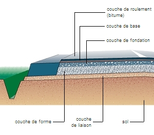 La chaussée doit normalement assurer, pendant un temps relativement long, des qualités de surface satisfaisantes : uniformité du profil en long et absence d'orniérage du profil en travers, pour épargner des vibrations exagérées aux véhicules et offrir une résistance suffisante au glissement. Une chaussée comporte, en général, trois couches : la fondation, la couche de base et la couche de surface. Parfois, les deux dernières couches sont remplacées par une dalle en béton de ciment.
