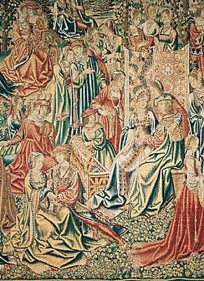 En France, au xve s., les perturbations dues à la guerre de Cent Ans provoquent une raréfaction de la main-d'œuvre. Cet état de choses entraîne la création d'« ateliers nomades », qui se fixent pour un temps plus ou moins long, selon les commandes, en divers endroits, en particulier dans le Val de Loire. C'est dans ces conditions qu'ont été tissées les tapisseries de l'hôtel-Dieu de Beaune. La richesse des fonds, des verdures parsemées de fleurs, d'arbres, d'animaux qui encadrent les personnages principaux, caractérise les tentures de cette époque.