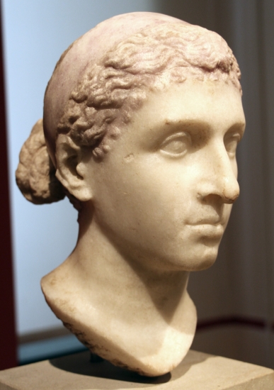 Héritière des Ptolémées, (Lagides) et dernière reine d’Égypte, Cléopâtre VII Philopator est l’une des figures féminines les plus connues de l’histoire. On lui prête un pouvoir de séduction hors du commun, qui ne doit pas éclipser le rôle déterminant qu’elle a tenu pour restaurer la grandeur de son royaume. Plus attachée à l'Égypte qu'aucun de ses prédécesseurs étrangers, Cléopâtre fut la première reine grecque à parler l'égyptien, à adopter certaines croyances pharaoniques et à vouloir rendre à l'Égypte la place qu'elle avait auparavant occupée pendant des siècles. Sa politique, traditionaliste à l'intérieur, audacieuse à l'extérieur, fut constamment soutenue par le peuple égyptien, dont elle avait renforcé le nationalisme et l'orgueil. Intelligente et ambitieuse, elle était, dit-on, d'une beauté remarquable qu'elle sut, à l'occasion, user comme atout dans son jeu politique.