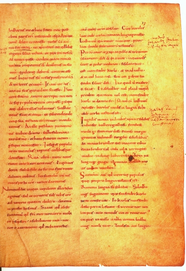 Vainqueurs de leur aîné, l'empereur Lothaire, à Fontenoy-en-Puisaye le 25 juin 841, les deux frères scellent leur alliance par les serments de Strasbourg du 14 février 842, premier acte officiel rédigé non pas en latin, mais partiellement en « roman » et en « tudesque ». Enfin, en août 843, par le traité de Verdun, ils contraignent Lothaire à accepter le partage définitif de l'héritage carolingien en trois nouveaux États : la Francia occidentalis, qui revient à Charles le Chauve ; la Francia orientalis, qui revient à Louis le Germanique ; la Francia media, enfin, que conserve Lothaire avec le titre impérial, qui constitue un État tampon s'étirant entre les deux premiers de la Frise à l'Italie du Sud et qui englobe les capitales : Aix-la-Chapelle et Rome.