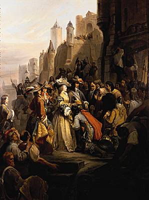 Entrée de Mademoiselle de Montpensier à Orléans, par Alfred Johannot. Peinture à l'huile de la première moitié du XIXe siècle. (Musée des Beaux-Arts, Orléans.)
