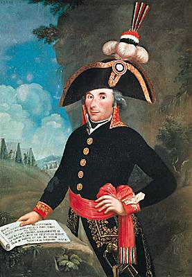 André Masséna, maréchal et pair de France. Peinture à l'huile le représentant en général de division de l'armée républicaine en l'an IV (1796). Il sera nommé maréchal d'Empire en 1804 par Napoléon. (Musée Masséna, Marseille.)