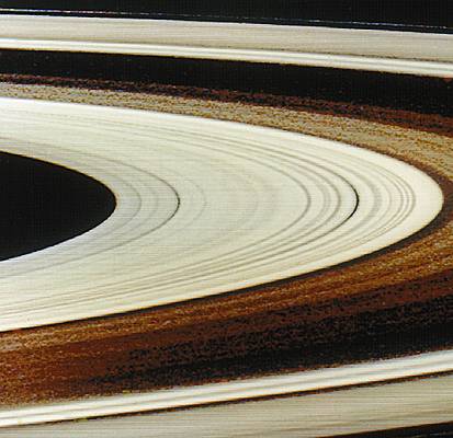 Les anneaux de Saturne sont formés d'une multitude de petits corps. Photographie prise par la sonde spatiale Voyager 1 en 1980.