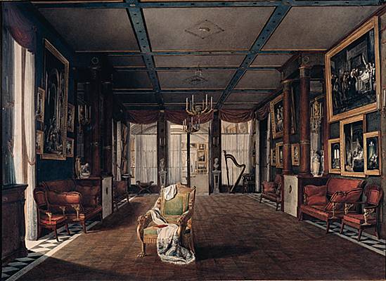 Auguste Garneray, le Salon de musique au château de Malmaison
