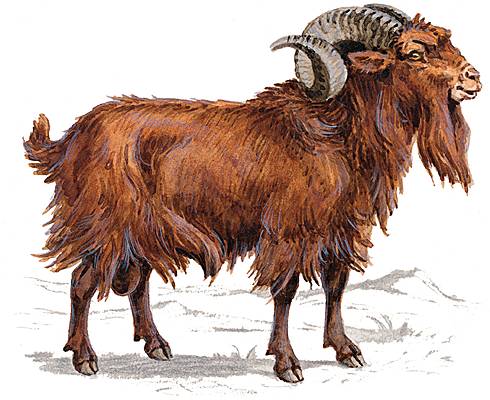 Mâle de la chèvre, aux cornes puissantes, à la barbe développée...