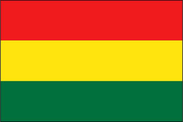 Drapeau de la Bolivie.Adopté en 1888. Les couleurs avaient été choisies par le premier président en 1851. Le rouge signifie la bravoure militaire ; le jaune, les richesses minières ; le vert, la fertilité de la terre.