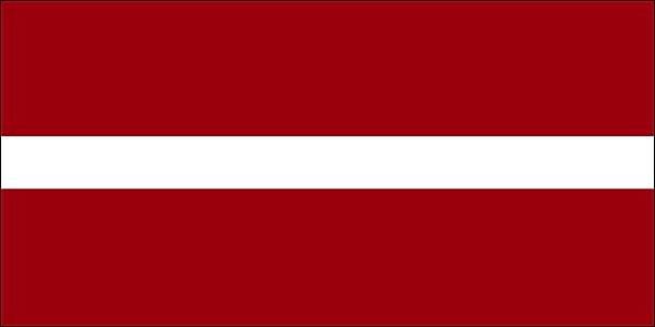 Drapeau de la Lettonie.En usage de 1919 à 1940. Réveillées en 1989, ces couleurs, disposées comme celles de Léopold V, archiduc d'Autriche au ceinturon d'arme blanc sur la cotte de mailles sanglante, symbolisent le linceul des héros.