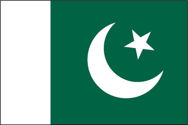 Drapeau du Pakistan.Adopté en 1947. L'étoile, le croissant et la couleur verte symbolisent l'islam, tandis que la bande verticale blanche représente les minorités religieuses.