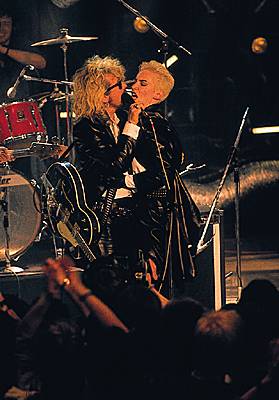 Le groupe de rock anglais Eurythmics (Annie Lennox et Dave Stewart) en concert, au festival de Montreux, en 1986.