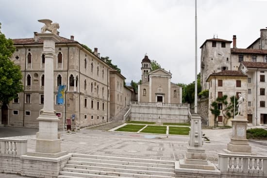 La Piazza Maggiore à Feltre, en Vénétie, dans le nord-est de l'Italie : à gauche, le lion de Saint-Marc (XVIe s.), posé sur une colonne, rappelle la présence de Venise ; au fond, l'église San Rocco (1599), à la façade classique ; devant l'église, la fontaine est due à T. Lombardo (1520).