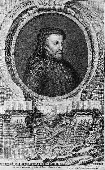 Geoffrey Chaucer, poète anglais. Gravure du XVIIIe siècle, par Jacobus Houbraken.