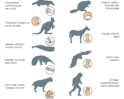 Différents exemples de mammifères.