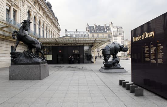 Esplanade du musée d'Orsay : sculptures (1878) représentant un cheval et un rhinocéros, provenant du décor extérieur du Palais du Trocadéro.