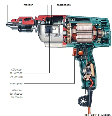 Éléments d'une perceuse électrique portative.