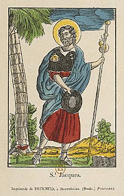 L'apôtre saint Jacques le Majeur. Imagerie (XIXe siècle) de Deckherr, à Montbéliard. (Bibliothèque nationale de France, Paris.)