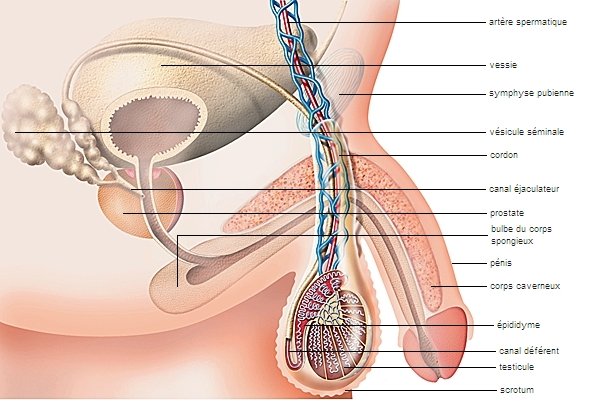 L'épididyme est constitué d'un canal microscopique très long, pelotonné sur lui-même, à l'intérieur duquel les cellules spermatiques produites dans le testicule progressent lentement en achevant leur maturation.
