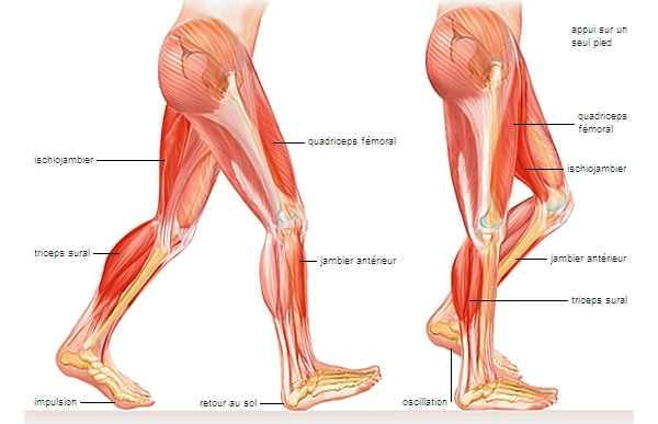 La fonction d’équilibration du corps s’exerce aussi bien en phase statique (station debout immobile) qu’en phase dynamique (marche ou course). Elle utilise tous les muscles intrinsèques et extrinsèques obéissant aux réflexes d’équilibre.