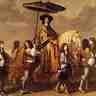 Pierre Séguier (1588-1672), chancelier de France et garde des Sceaux, fut l'un des principaux protecteurs de Le Brun ; pour marquer à la fois sa reconnaissance et son allégeance à ce généreux mécène, le peintre s'est ici représenté au rang de ses serviteurs, portant le dais de majesté, symbole du pouvoir et de la puissance du magistrat.