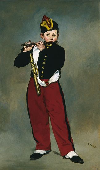 Les futurs impressionnistes, qui sont avant tout les jeunes artistes de l'époque ayant en commun le souci d'échapper à l'académisme, le désignent comme tête de file de leur révolte, en dépit de ses protestations. Pourtant, Manet peint relativement « sombre », suivant en cela les préceptes académiques auxquels il revient parfois comme pour prouver son savoir-faire. Pissarro, Alfred Sisley, Cézanne, tous ceux qui se rangeront sous la bannière de l’impressionnisme peignent alors d’une manière nettement plus novatrice, révolutionnaire pour l’époque, privilégiant la construction par la couleur au dessin préliminaire. Ce souci du « métier » n’empêche pas de considérer Manet aujourd’hui comme le précurseur d’un mouvement qu’il a malgré lui préparé et dont le grand représentant sera un presque homonyme, Monet.