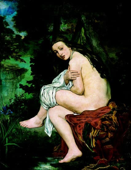 La première toile véritablement personnelle de Manet, le Buveur d'absinthe (1858), inspirée par Baudelaire, n’est pas acceptée au Salon de 1859 : ce portrait d’un buveur est jugé très peu académique. Exposé au Salon des Refusés en 1863, son Déjeuner sur l'herbe (1863), inspiré de Giorgione, est d'un style qui dérange (notamment par des contrastes très francs, par le traitement des personnages comme superposés sur un fond esquissé). Mais le sujet choque surtout avec la présence d'une femme nue parmi des hommes revêtus de vêtements contemporains : le nu n’est alors admis que voilé de quelque prétexte mythologique.