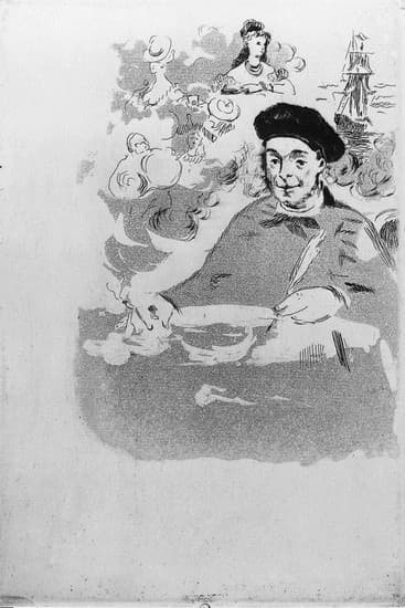 Manet a été toute sa vie très proche du milieu littéraire, des écrivains et des poètes. Charles Baudelaire le rencontre à la fin des années 1850 chez une relation commune. Une grande connivence se noue immédiatement entre les deux hommes, et l'optique baudelairienne marque la production du peintre jusqu’en 1860. En 1866, Émile Zola soutient l’artiste après un nouvel échec au Salon et publie quelques années plus tard une monographie sur son art. Manet fréquente tardivement le cercle poétique de Stéphane Mallarmé avec qui il se lie d’une grande amitié. Il exécute diverses illustrations de ses publications. Mallarmé, après Baudelaire et Zola (1868), pose en 1876 pour le peintre, qui réalise de lui un admirable portrait.
